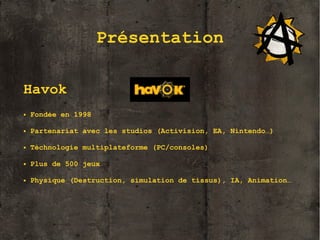 Project Anarchy est une suite d'outils gratuits pour le développement de jeux mobiles, basée sur la technologie Havok, qui propose des fonctionnalités telles que le débogage, l'IA et l'animation. Les développeurs indépendants bénéficient d'un support de la communauté et d'une documentation complète, avec le code source disponible sur GitHub. La plateforme est conçue pour faciliter le processus de création de jeux, tout en supportant des projets multiplateformes.