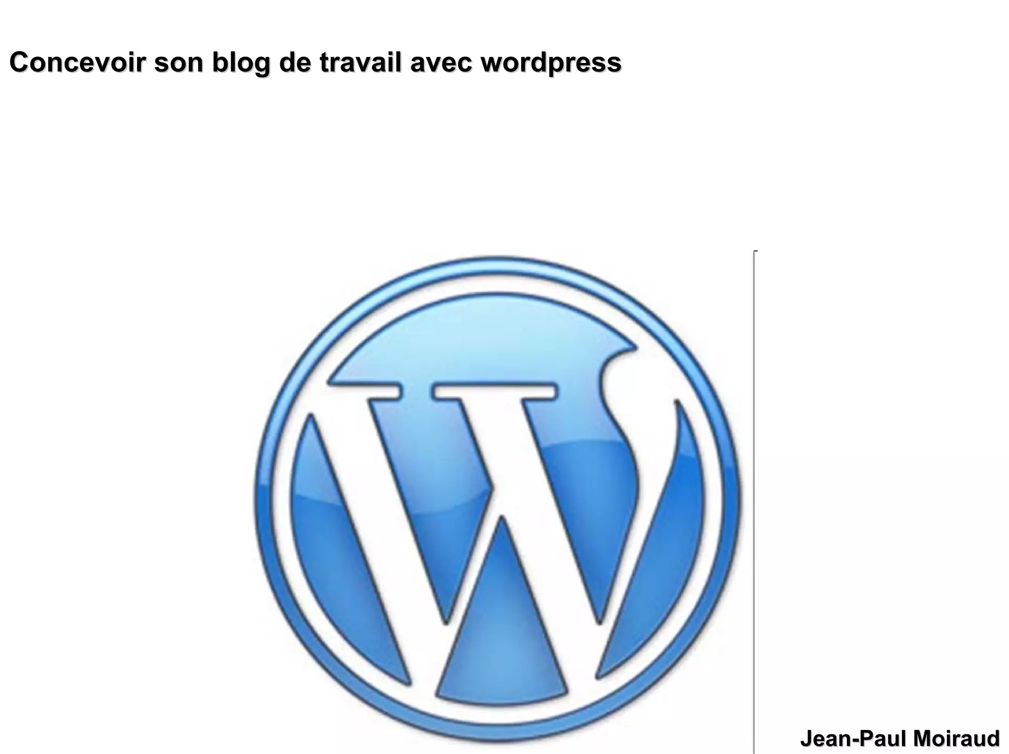 Le document explique comment créer un blog de travail sur WordPress en remplissant un formulaire sur leur site. Il souligne l'importance de la gestion des compétences pour organiser les informations et guider les lecteurs. Enfin, il aborde la nécessité de structurer le blog pour matérialiser une stratégie de conception efficace.