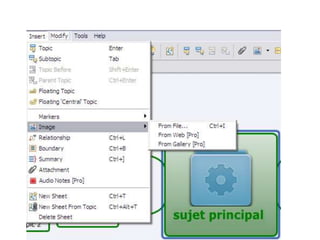 Le document décrit l'utilisation de XMind, un logiciel gratuit pour créer des livres avec plusieurs feuilles, y compris des liens entre celles-ci. Il explique comment modifier l'aspect des feuilles, insérer des sous-sujets et des images, ainsi que la gestion de la hiérarchie entre sujets. Des instructions spécifiques sont fournies pour manipuler les propriétés des sujets et des feuilles dans l'application.