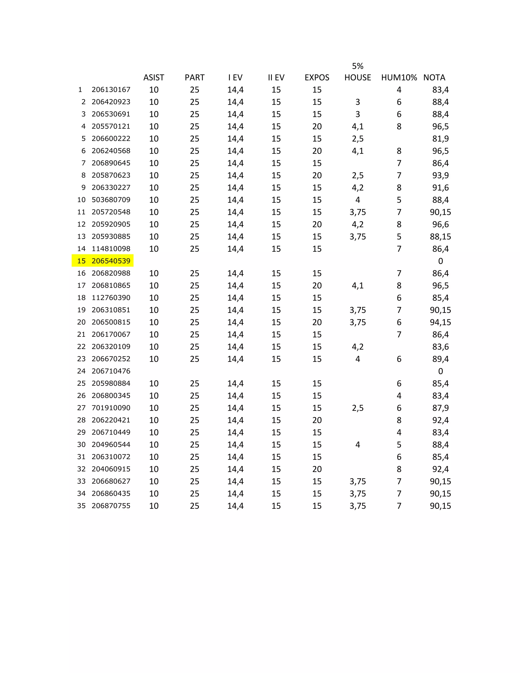 Le document présente un tableau d'évaluations avec des identifiants et des notes pour plusieurs entités. Chaque ligne contient des informations telles que les scores et des paramètres associés. Les notes varient et les valeurs semblent indiquer des évaluations ou des performances spécifiques.