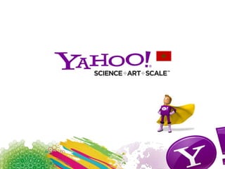 Le document présente une analyse du positionnement et des audiences de Yahoo! Digital Advertising, mettant en avant des statistiques clés sur l'engagement des utilisateurs et les solutions marketing proposées. Il mentionne également les partenariats avec des entreprises telles que Facebook et Nokia, ainsi que des données spécifiques sur les internautes marocains utilisant Yahoo! Maktoob. En outre, il aborde les différents formats publicitaires et leur acceptabilité en fonction de leur impact et intrusivité.