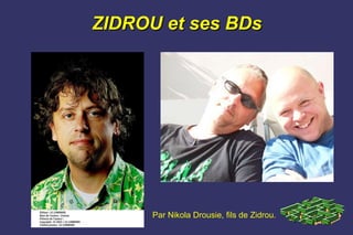 Zidrou est un auteur de bande dessinée connu pour ses séries telles que 'L'élève Ducobu', 'Tamara', et 'Les Crannibales'. Il a commencé sa carrière en créant Ducobu pour s'amuser avec un ami, et suite au succès, a évolué vers des gags. Au fil du temps, il a collaboré avec de nombreux dessinateurs.