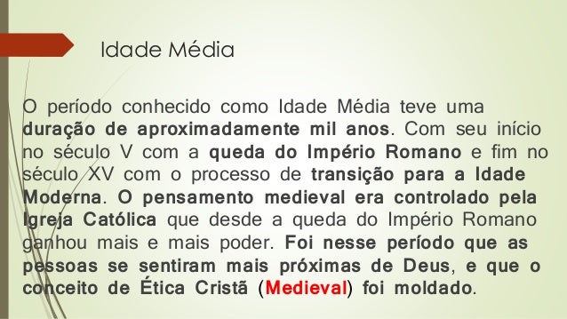 Seminário Sobre Ética Cristã Medieval. Principais Pontos Abordados: 1. Ética Cristã, 2. Ética Cristã Filosófica, 3. Decadência do Poder Eclesiástico.